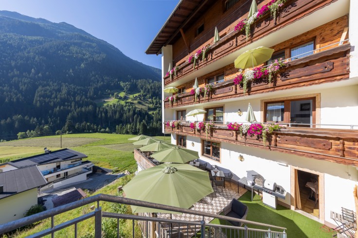 Dit prachtige Hotel-Pension bevindt zich in See im Paznauntal, op een zonnige helling boven het dal, met een prachtig uitzicht op het omliggende berglandschap van de Silvretta-groep.