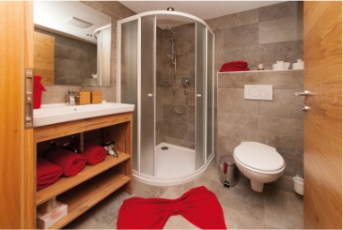 Het appartement beschikt over twee elegante badkamers, waarvan één is voorzien van een privé infraroodcabine – een bijzonder pluspunt voor gasten die na een actieve dag in de bergen willen ontspannen.