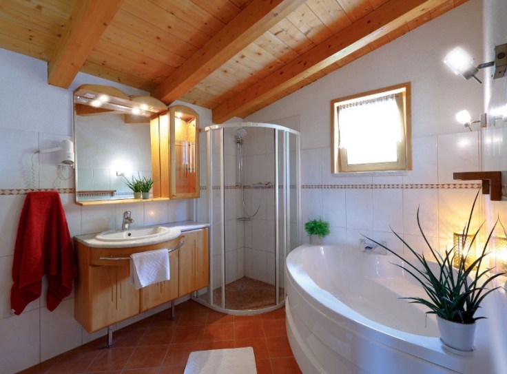 Buiten is er een ruime tuin met speeltoestellen, het verwarmde zwembad en de buitensauna in Blockhaus-stijl.