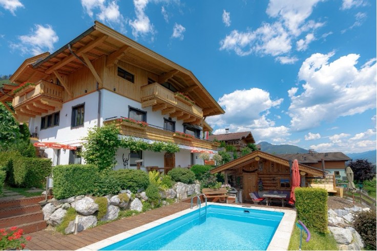 Hier is de eigenaarswoning gevestigd. De eigenaarswoning is met 130m2 ruim bemeten en biedt voldoende ruimte voor een compleet gezin. De woning heeft eveneens een eigen toegang. De woning bestaat uit een hal (7m2), woonkamer (40m2) met houtkachel en open keuken, drie slaapkamers van resp. 16, 14 en 22m2, tussenhal van 8m2, separaat toilet, twee badkamers van resp. 9 en 5,5m2 en 2 balkons met panoramisch uitzicht op de Kitzbüheler Alpen.