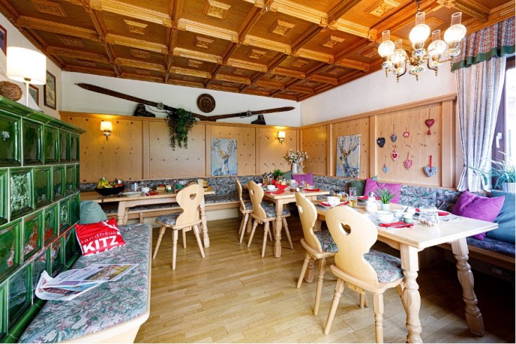 Entreehal met toegang tot de gezellige Stube, waar men op verzoek ook ontbijt kan krijgen. Ski-opslag inclusief skischoenwarmers van buitenaf bereikbaar, gastentoilet, opbergruimte en toegang tot de boven- en benedenverdieping.